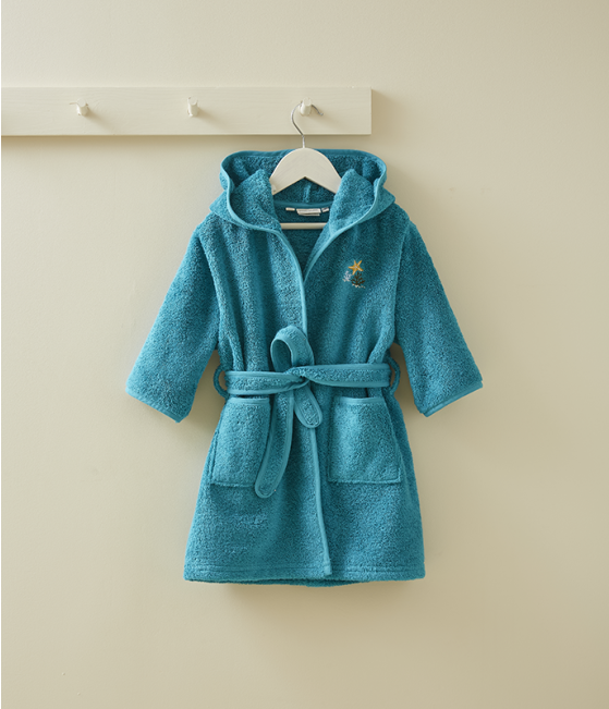 Give your child ultimate comfort after a bath with this blue bathrobe made from 100% cotton.