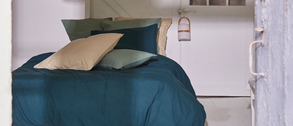 Avant de ranger votre linge de lit en coton, coton lavé ou percale de coton, nous vous conseillons de le repasser à température moyenne. Vous pouvez, si vous le souhaitez, repasser votre housse de couette en lin à chaleur modérée, mais cela reste facultatif car certains apprécient son aspect froissé naturel. De même, il n’est généralement pas nécessaire de repasser une parure de lit en gaze de coton ou percale lavée. Enfin, il est recommandé de repasser votre housse de couette en soie lorsqu’elle est retournée et encore humide ; sélectionnez une température basse pour ne pas l’endommager. Vous connaissez désormais le b.a-ba de l’entretien d’une housse de couette, du lavage au séchage en passant par le repassage ! Il ne vous reste plus qu’à la plier avec soin et la glisser dans un endroit sec et frais en vue d’une prochaine utilisation. Nous vous recommandons de renouveler l’entretien de votre linge de lit toutes les une à deux semaines pour qu’il conserve toute sa fraîcheur et son éclat.