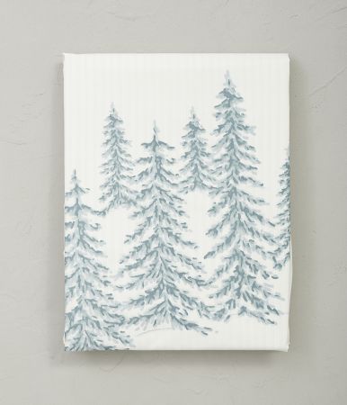 Mascarpone percale cotton duvet cover printed with a nordic landscape with firs, stags and deers. Back printed with fine stripes.