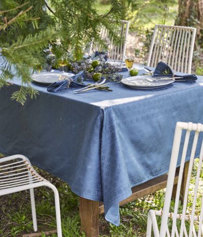 Ink blue damask tablecloth. Available in sizes 180x180 cm, 180x250 cm, 180x300 cm and 180x350 cm.