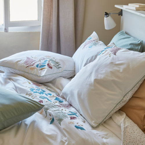 Entre coton, percale, percale lavée ou lin, chaque fibre a ses spécificités, et il n’est pas toujours simple de s’y retrouver. Pour vous accompagner dans votre choix, Sylvie Thiriez, spécialiste du linge de maison depuis près de 40 ans, vous dévoile les avantages et particularités de chaque matière afin de composer la parure idéale pour votre chambre.